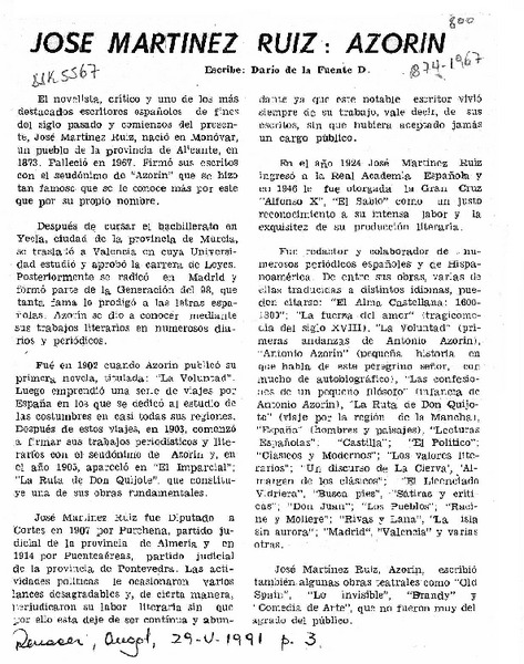 José Martínez Ruiz, Azorín [artículo] Darío de la Fuente D.