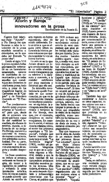 Azorín y Baroja, innovadores en la prosa [artículo] Darío de la Fuente D.