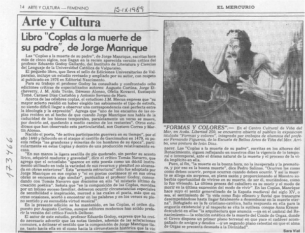 Libro "Coplas a la muerte de su padre", de Jorge Manrique [artículo] Sara Vial.