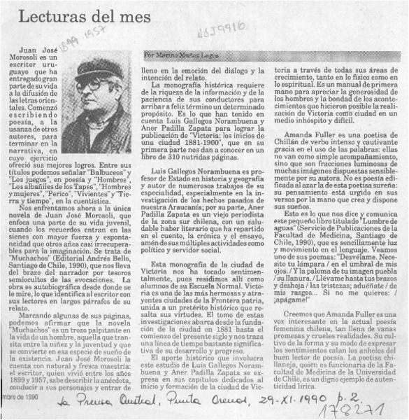 Lecturas del mes [artículo] Marino Muñoz Lagos.