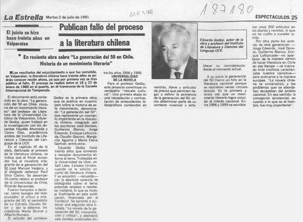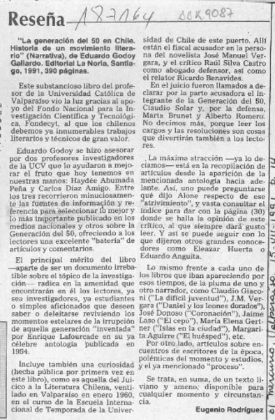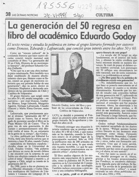 Apareció 2a edición de libro de E. Godoy sobre generación del 50 [artículo].