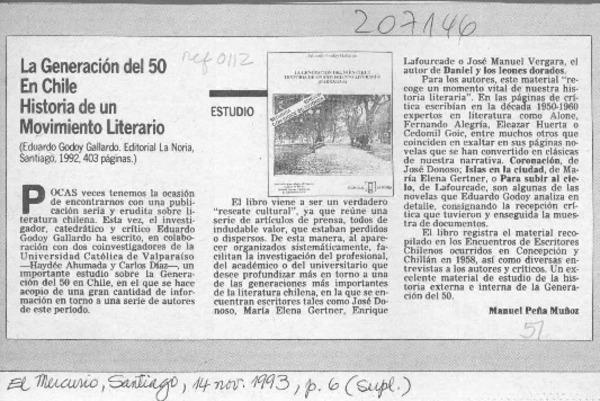 La Generación del 50 en Chile historia de un movimiento literario [artículo] Manuel Peña Muñoz.