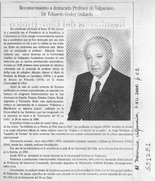 Reconocimiento a destacado profesor de Valparaíso, Dr. Eduardo Godoy Gallardo [artículo]