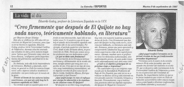 Autores chilenos - Entrevistas - Cervantes Saavedra, Miguel de - Godoy Gallardo, Eduardo