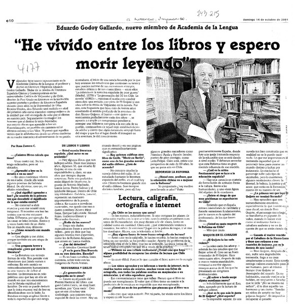"He vivido entre los libros y espero morir leyendo" : [entrevistas] [artículo] Rosa Zamora C.