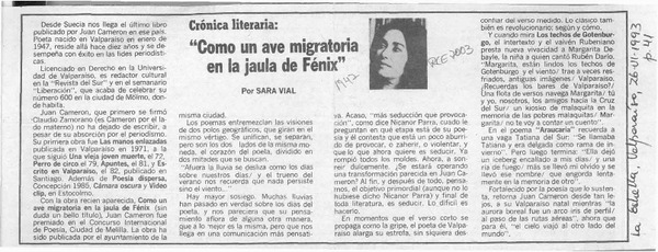 "Como un ave migratoria en la jaula de Fénix" [artículo] Sara Vial.