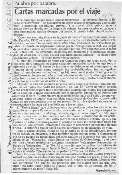 Cartas marcadas por el viaje [artículo] Marcelo Novoa.
