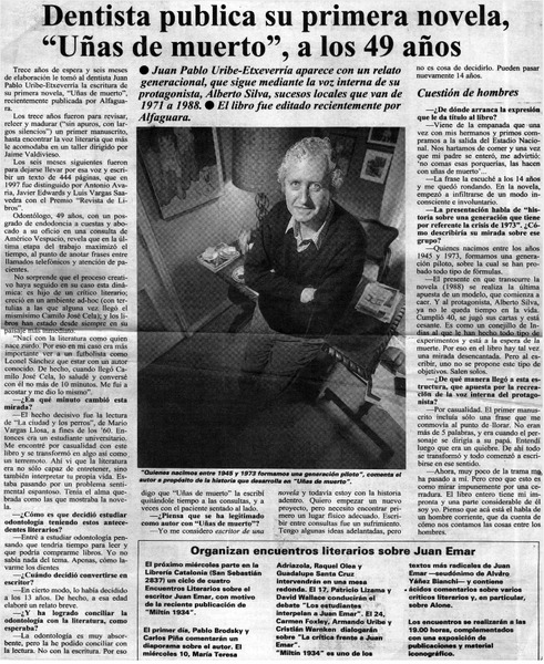 Dentista publica su primera novela, "Uñas de muerto", a los 49 años [artículo].