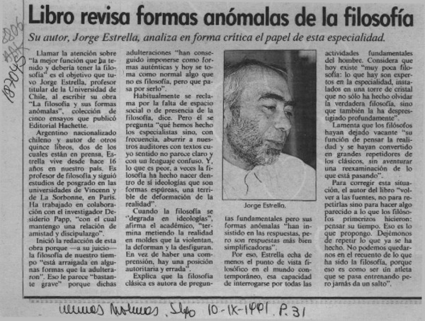 Autores chilenos - Estrella, Jorge - La Filosofía y sus formas anómalas