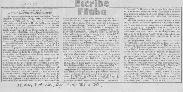 Dos poetas chilenos, Antonio Campaña, Rolando Cárdenas [artículo] Filebo.