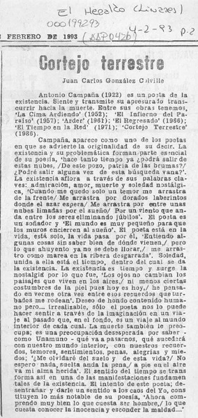 Cortejo terrestre [artículo] Juan Carlos González Colville.