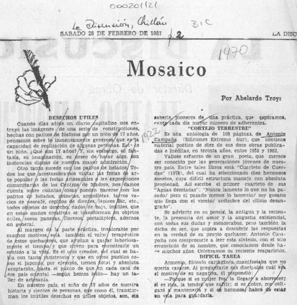 "Cortejo terrestre" [artículo] Abelardo Troy.