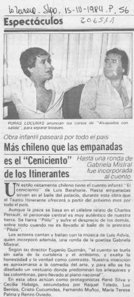 Más chileno que las empanadas es "El Ceniciento" de los itinerantes [artículo].