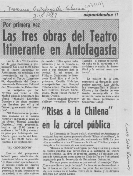 Las Tres obras del Teatro Itinerante en Antofagsta [artículo].