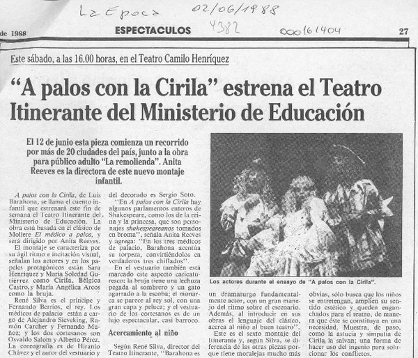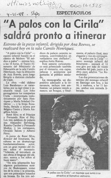 "A palos con la Cirila" estrena el Teatro Itinerante del Ministerio de Educación [artículo].