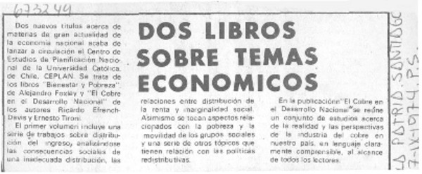 Autores chilenos - Tironi, Ernesto - Foxley, Alejandro - Ffrench-Davis Muñoz, Ricardo - Cobre en el desarrollo nacional - Bienestar y pobreza