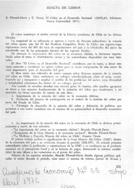 Autores chilenos - Tironi, Ernesto - Ffrench-Davis Muñoz, Ricardo - Cobre en el desarrollo nacional