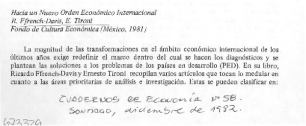 Autores chilenos - Tironi, Ernesto - Ffrench-Davis Muñoz, Ricardo - Hacia un nuevo orden económico internacional