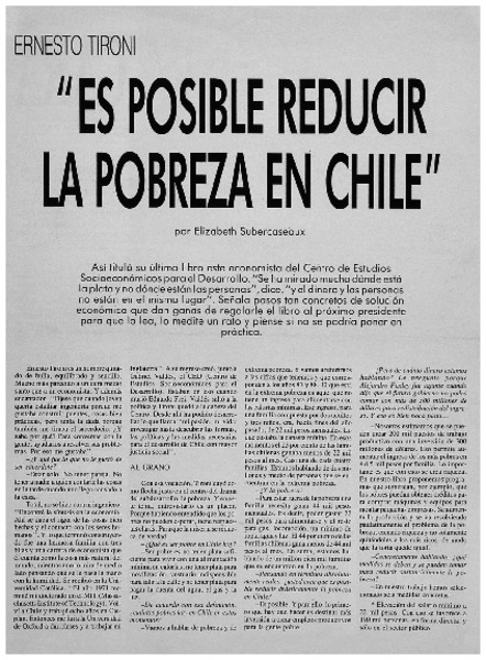 "Es posible reducir la pobreza en Chile" [entrevistas] : [artículo] Elizabeth Subercaseaux.