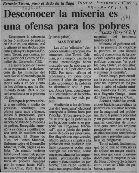 Desconocer la miseria es una ofensa para los pobres [artículo].