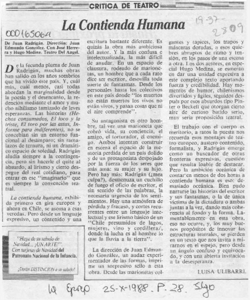 Radrigán y su "Contienda humana" [artículo] Wilfredo Mayorga.