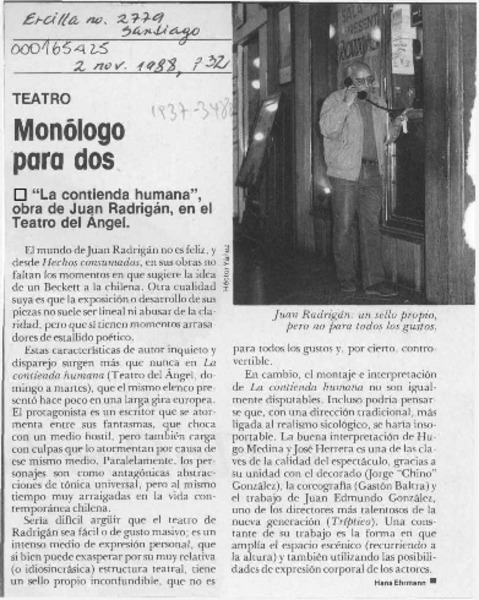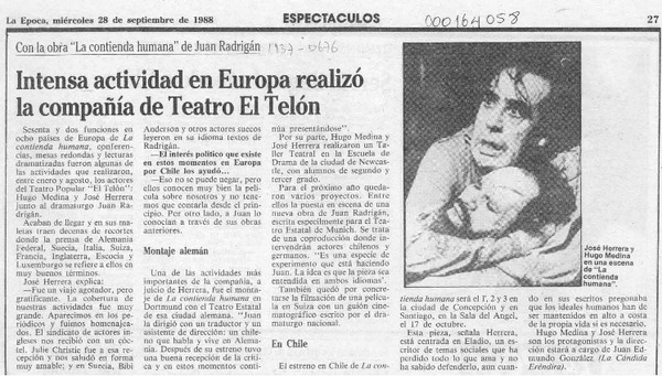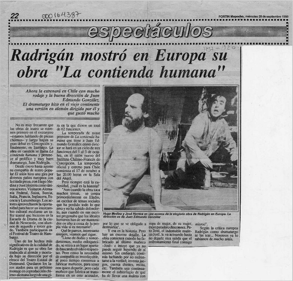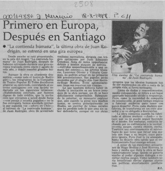 Radrigán mostró en Europa su obra "La contienda humana" [artículo].