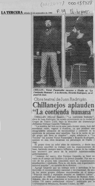 Chillanejos aplauden "La contienda humana" [artículo] Héctor Suazo.