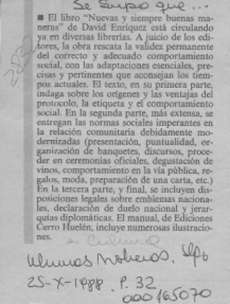 ENRIQUEZ, DAVID - NUEVAS Y SIEMPRE BUENAS MANERAS