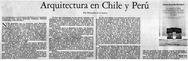 Arquitectura en Chile y Perú [artículo] Fernando de la Lastra.