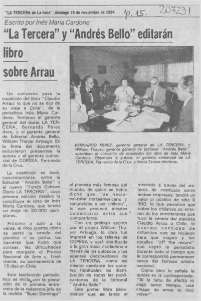 La Tercera y Andrés Bello editarán libro sobre Arrau [artículo].