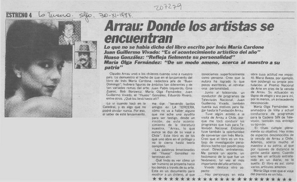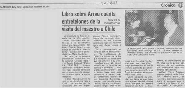 "La Tercera" reedita libro sobre C. Arrau [artículo] Héctor Suazo.