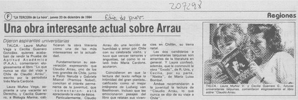 Entusiasmo por el libro sobre C. Arrau [artículo] Patricia Salinas.