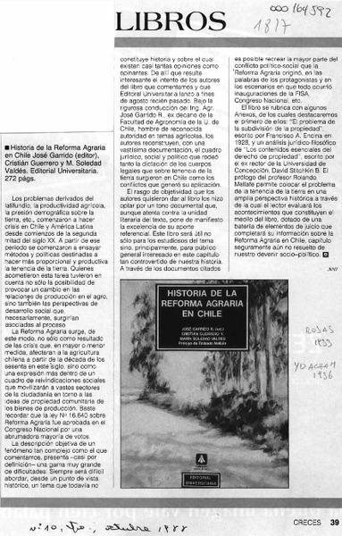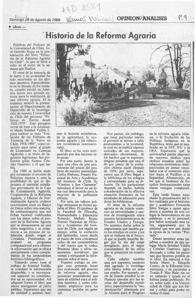 Historia de la Reforma Agraria en Chile [artículo] JMW.