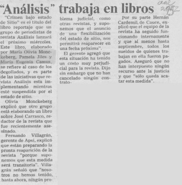 "Análisis" trabaja en libros [artículo].