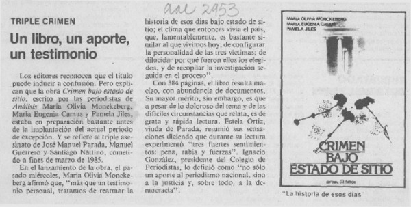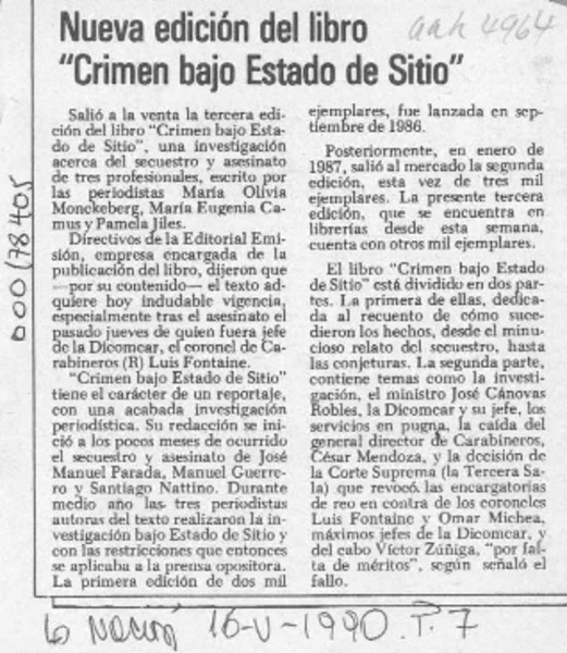 Nueva edición del libro "Crimen bajo estado de sitio" [artículo].