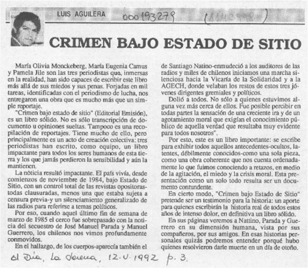 Crimen bajo estado de sitio [artículo] Luis E. Aguilera.