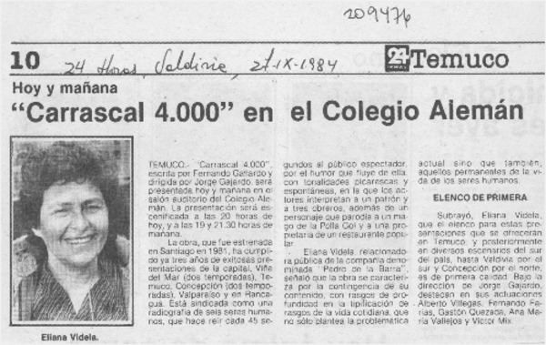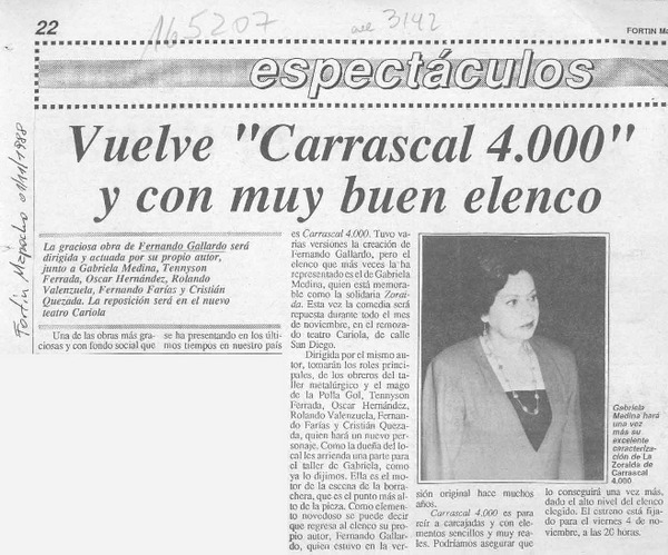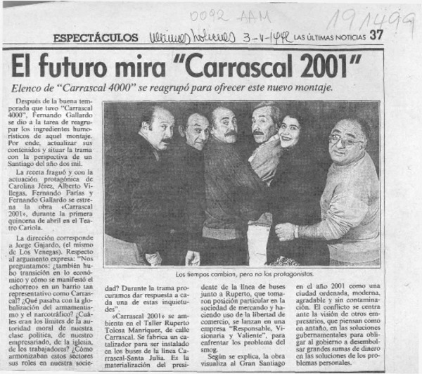 "Carrascal 4000" debuta hoy en el Teatro Municipal [artículo].