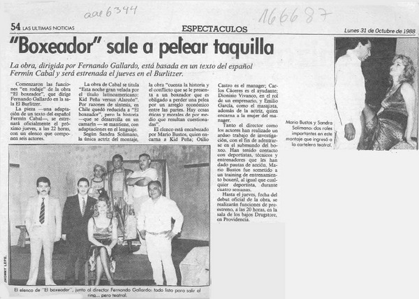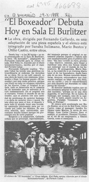 "El Boxeador" debuta hoy en sala El Burlitzer [artículo].