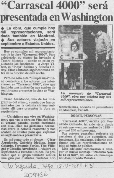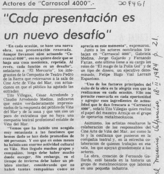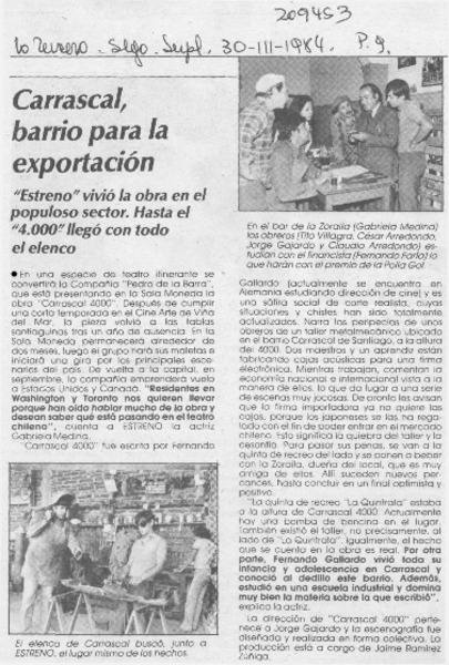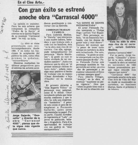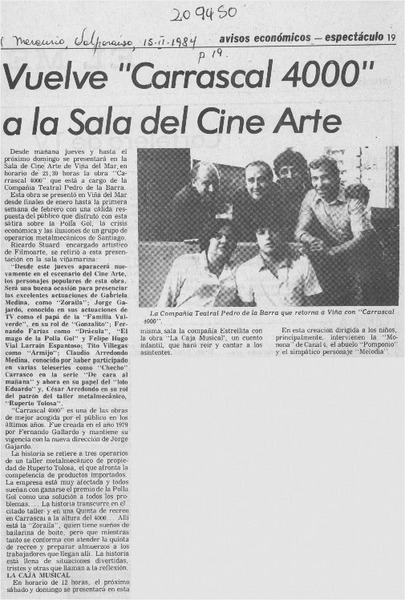 "Carrascal 4000" en el cine arte de Viña [artículo].