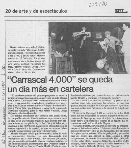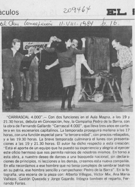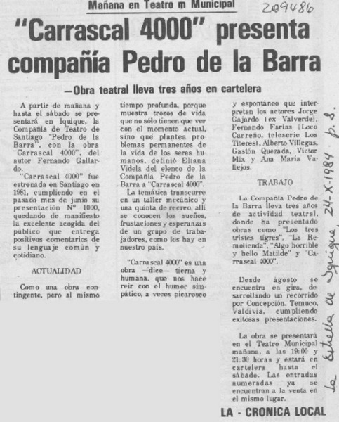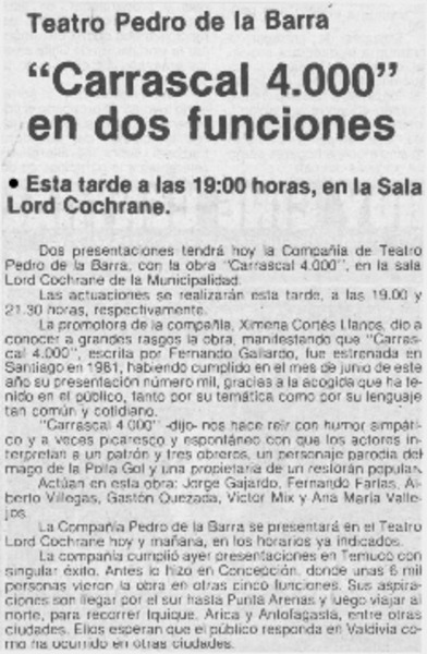 "Carrascal 4000" presenta compañía Pedro de la Barra [artículo].