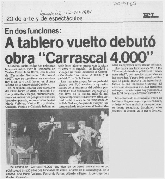 A tablero vuelto se presentó "Carrascal 4000" [artículo] Mario Aravena M.