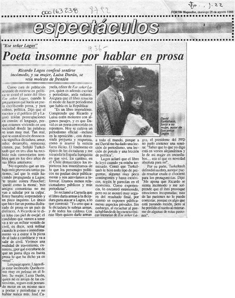 Editan "un poema disfrazado de prosa" sobre Ricardo Lagos [artículo].