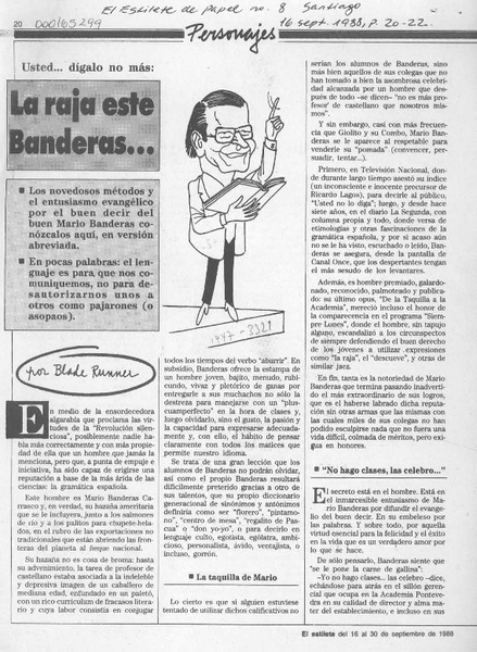 Defensa del idioma [artículo] Antonio Rojas Gómez.