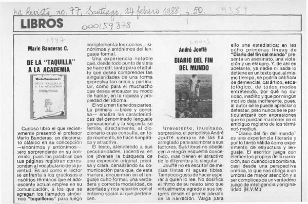 DE LA "TAQUILLA" A LA ACADEMIA - JOUFFE LOUIS, ANDRE - BANDERAS C., MARIO - DIARIO DEL FIN DEL MUNDO