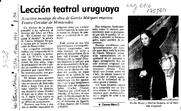 Lección teatral uruguaya [artículo] Carmen Mera O.