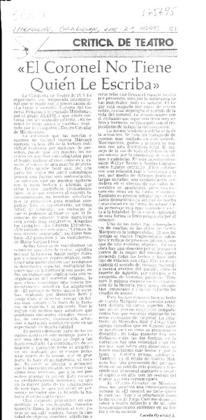"El Coronel no tiene quien le escriba" [artículo] Carola Oyarzún L.