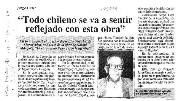 "Todo chileno se va a sentir reflejado con esta obra" [artículo].