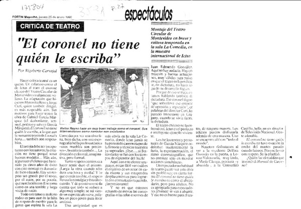 "El coronel no tiene quién le escriba" [artículo] Rigoberto Carvajal.
