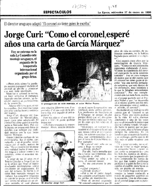 Jorge Curi, "Como el coronel, esperé años una carta de García Márquez" [artículo].