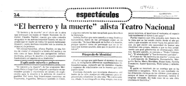 "El Herrero y la muerte" alista Teatro Nacional [artículo].